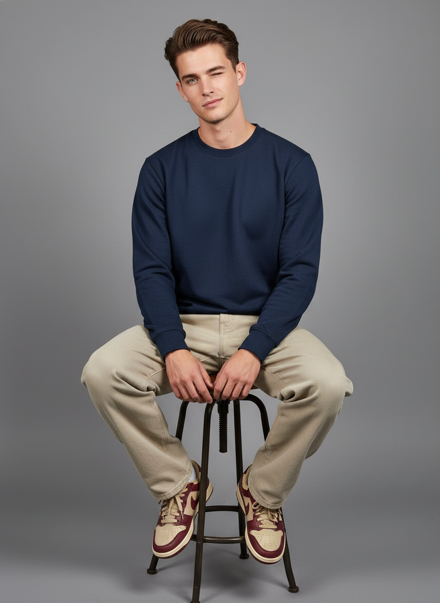 Experience unmatched comfort with our premium cotton sweatshirt, crafted from soft, breathable fabric that feels gentle on the skin. Designed for everyday wear, it features a smooth exterior and a cozy inner layer that keeps you warm without feeling heavy. The natural cotton material ensures excellent airflow, moisture control, and long-lasting comfort throughout the day.