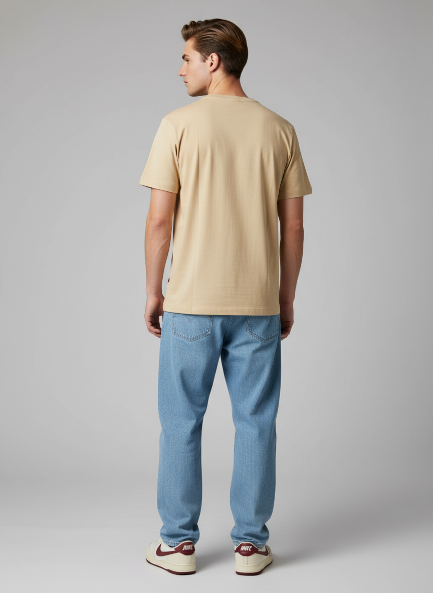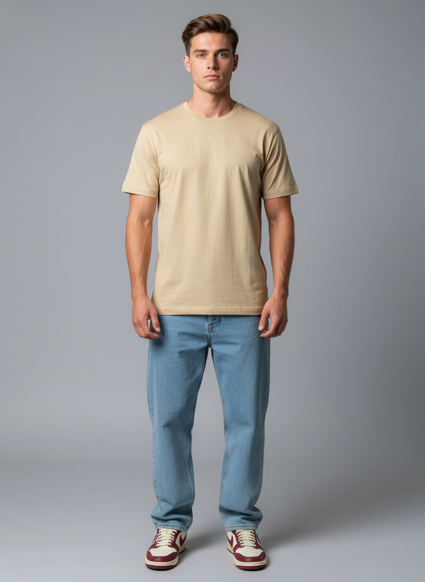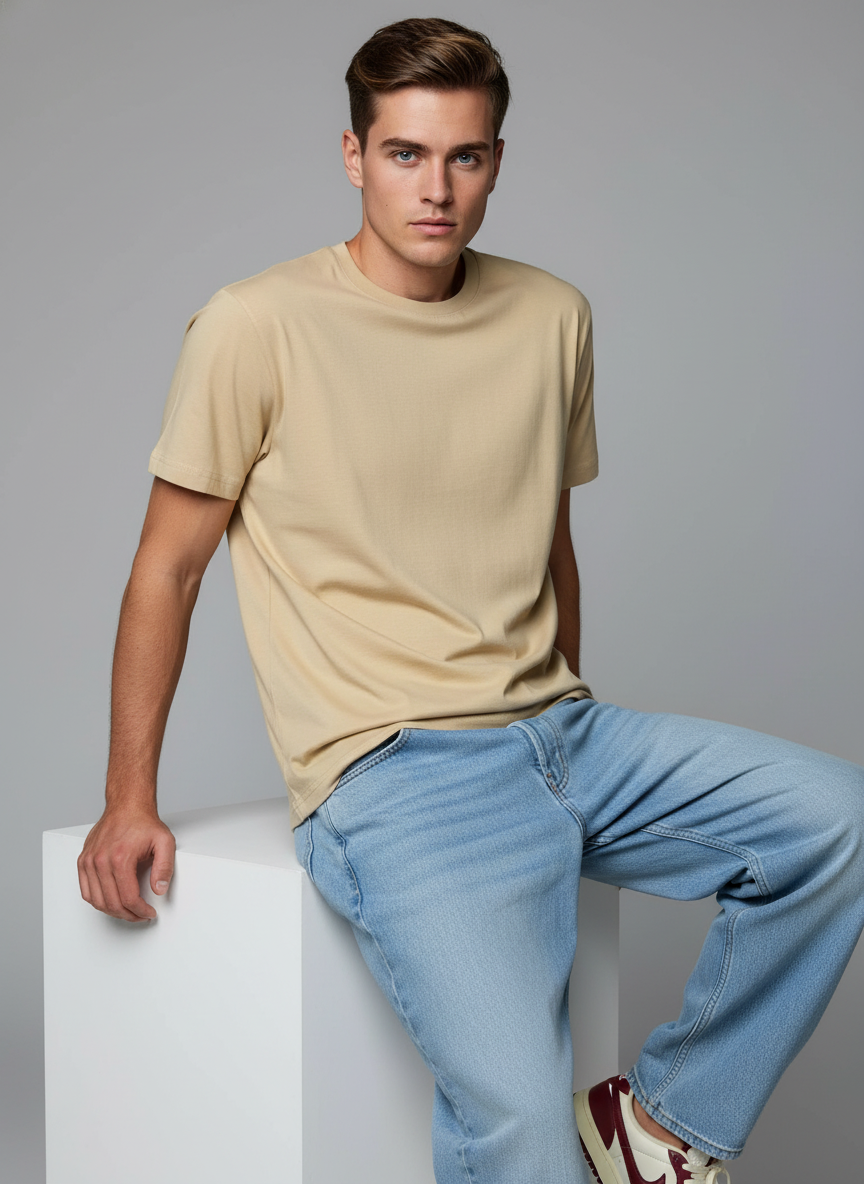Comfort Fit Round Neck Beige T-Shirt for Men
