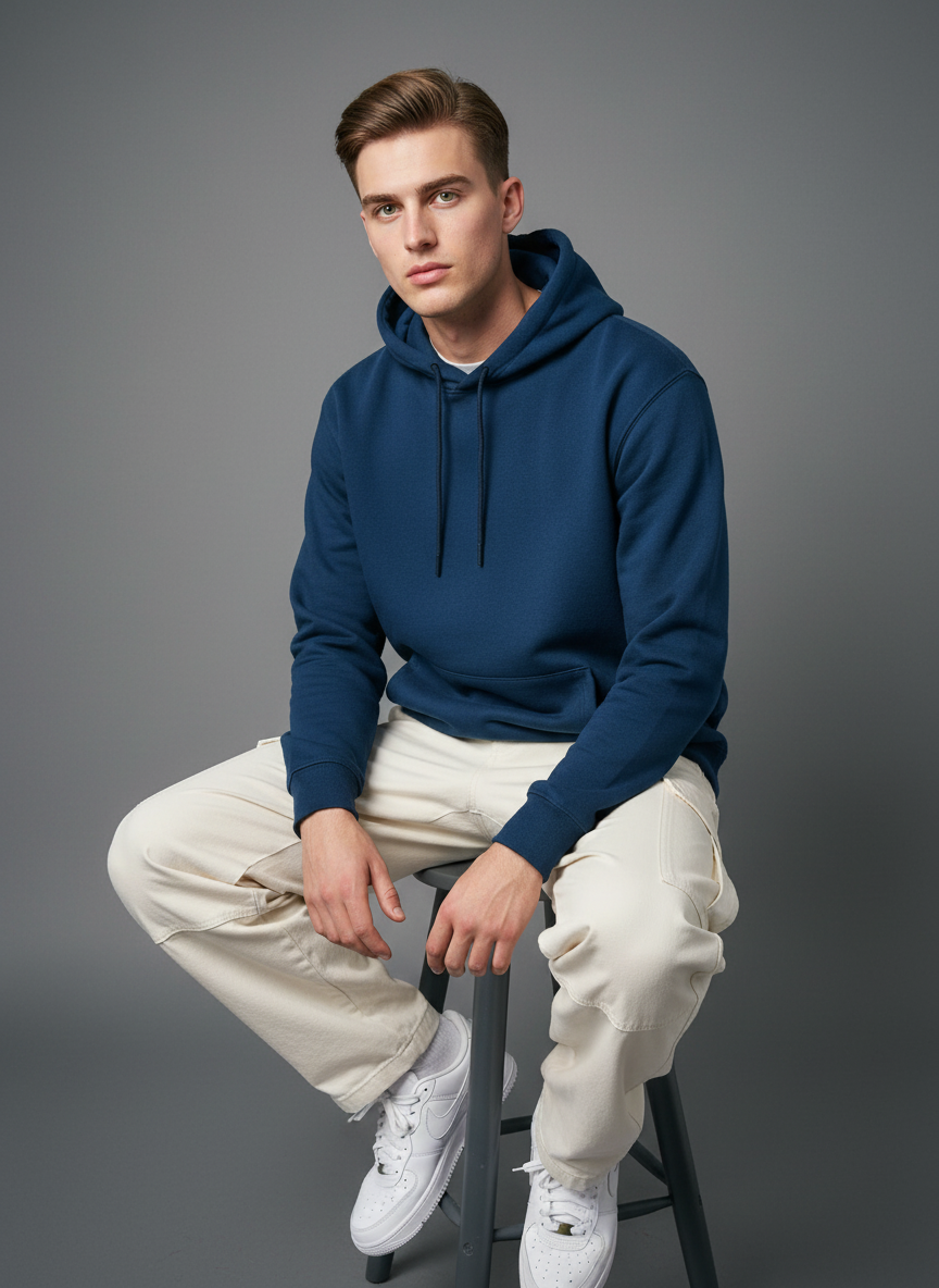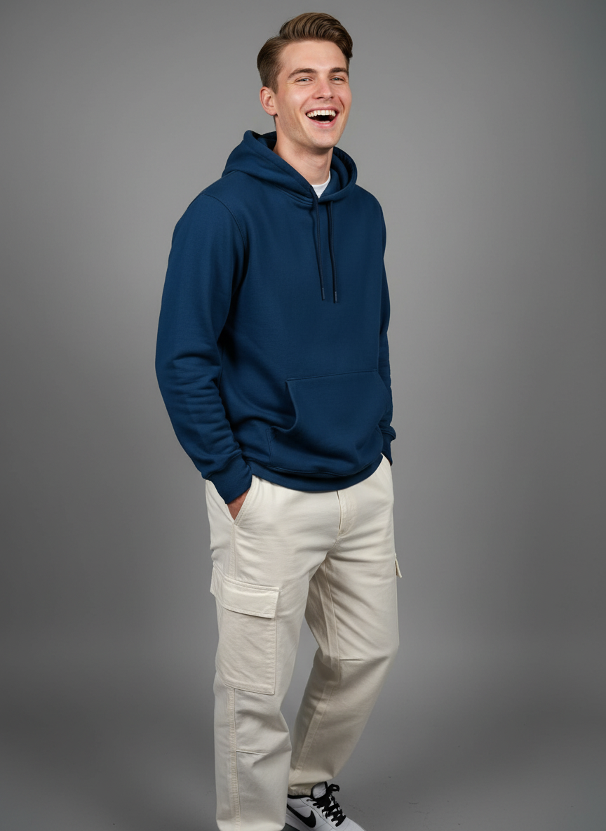 Cotton Fleece Navy Hoodie | Soft, Breathable & Warm Winter Outfit