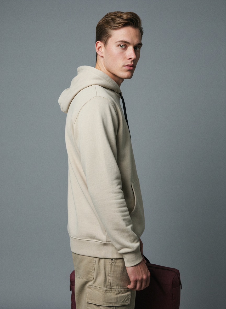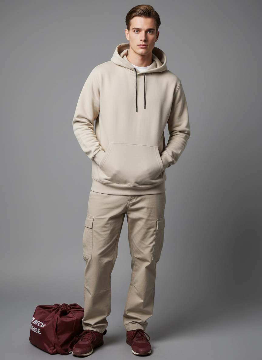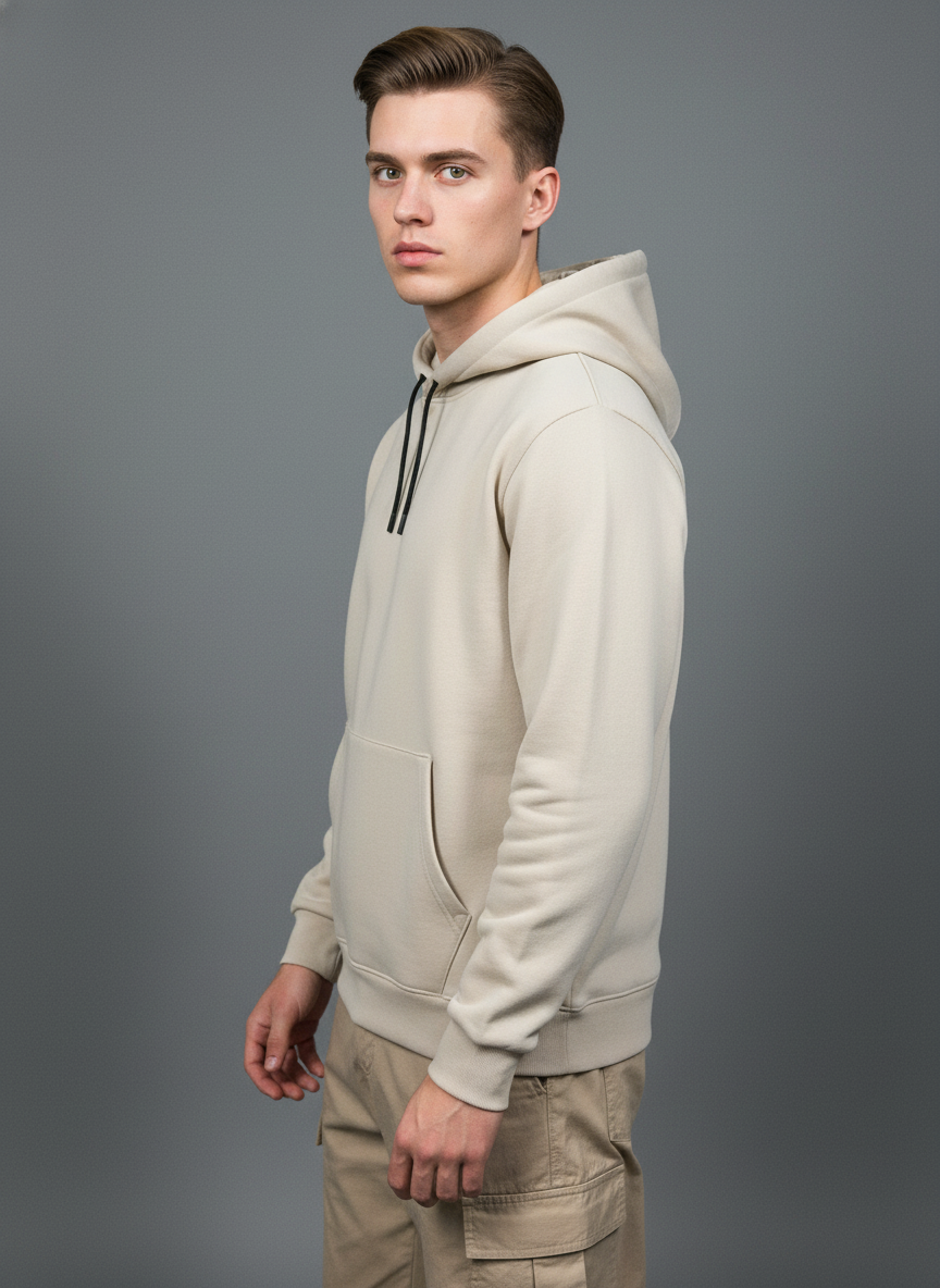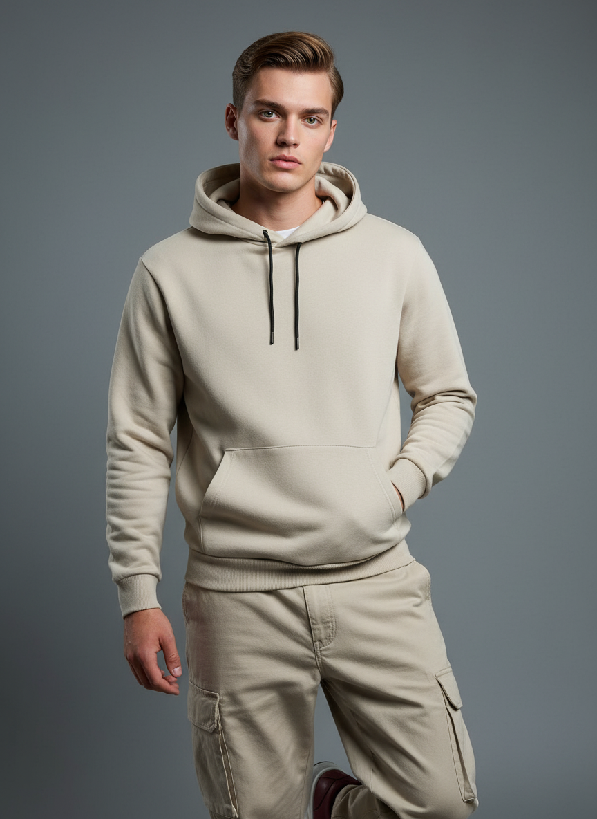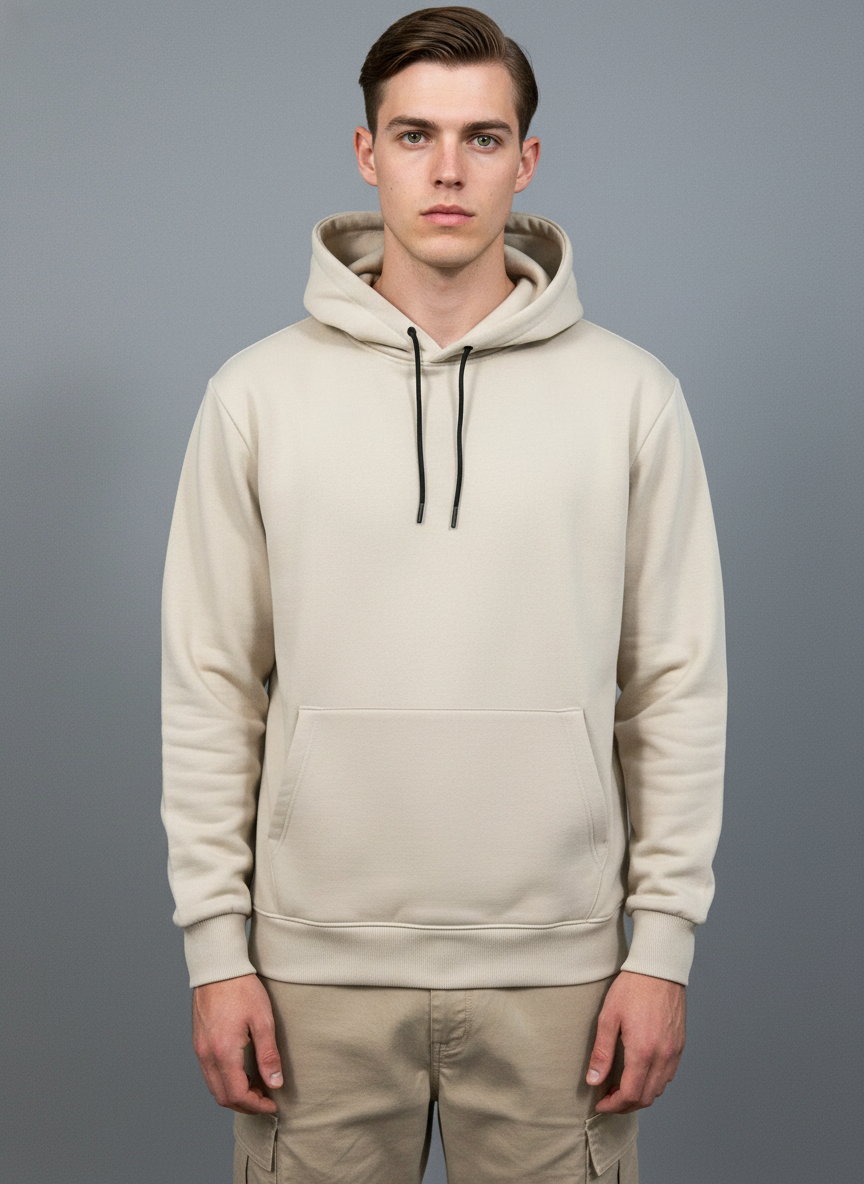 Cotton Fleece Beige Hoodie | Soft, Breathable & Warm Winter Outfit