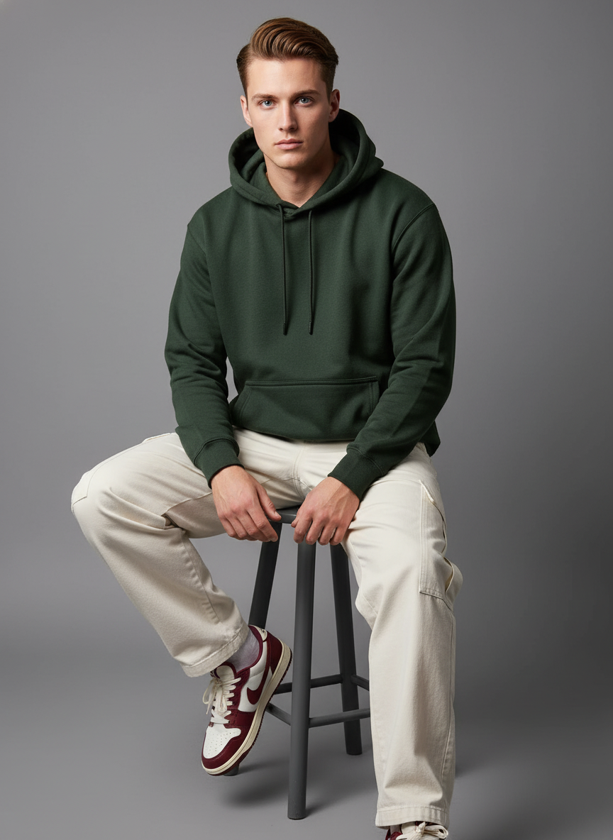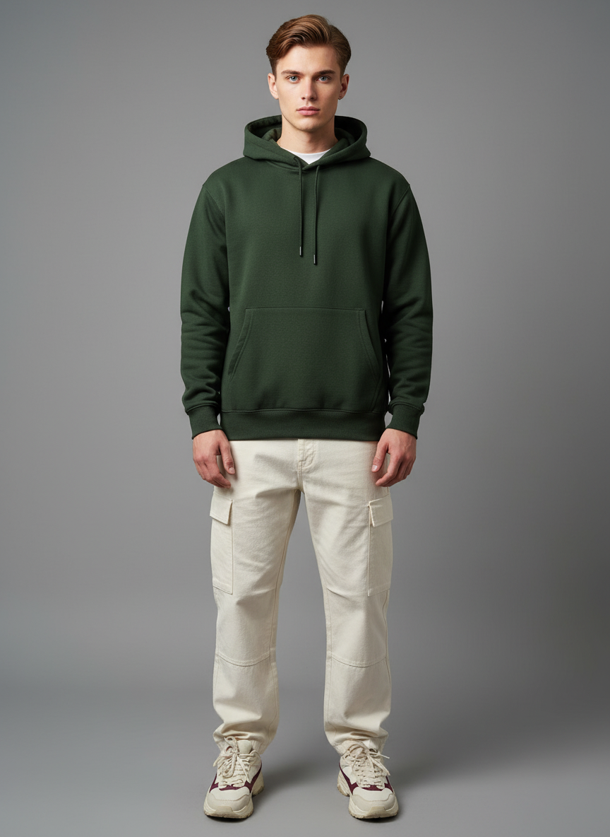 Cotton Fleece Olive Hoodie | Soft, Breathable & Warm Winter Outfit